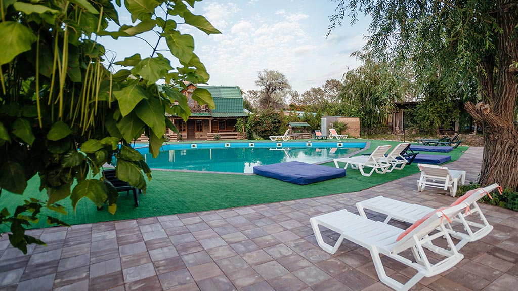 Поездом до ж/д вокзала г. Астрахань, далее самостоятельно на такси или на арендованном транспорте.